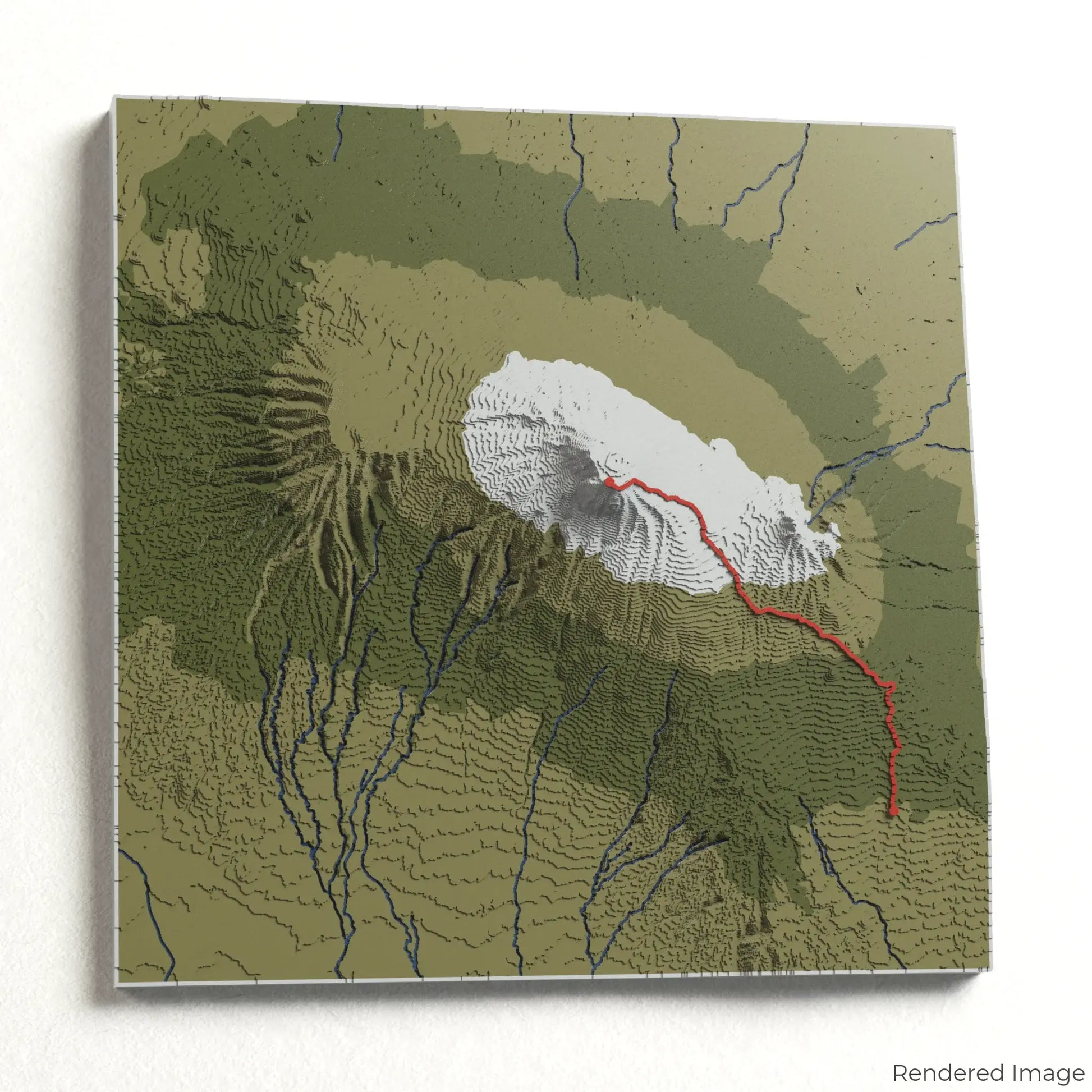 Embark on a legendary ascent to the summit of Mount Kilimanjaro with our 3D topographic map of the Marangu Route. Known as the “Coca-Cola Route,” this classic trail offers an accessible yet stunning journey to the highest peak in Africa.