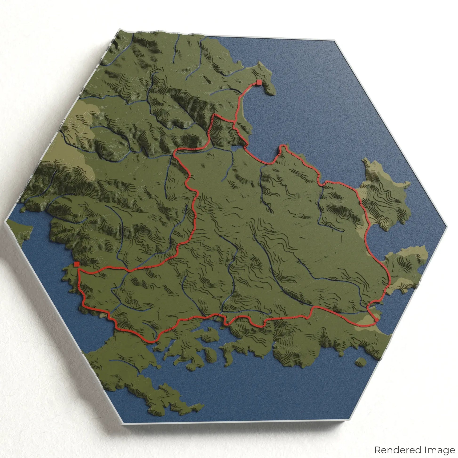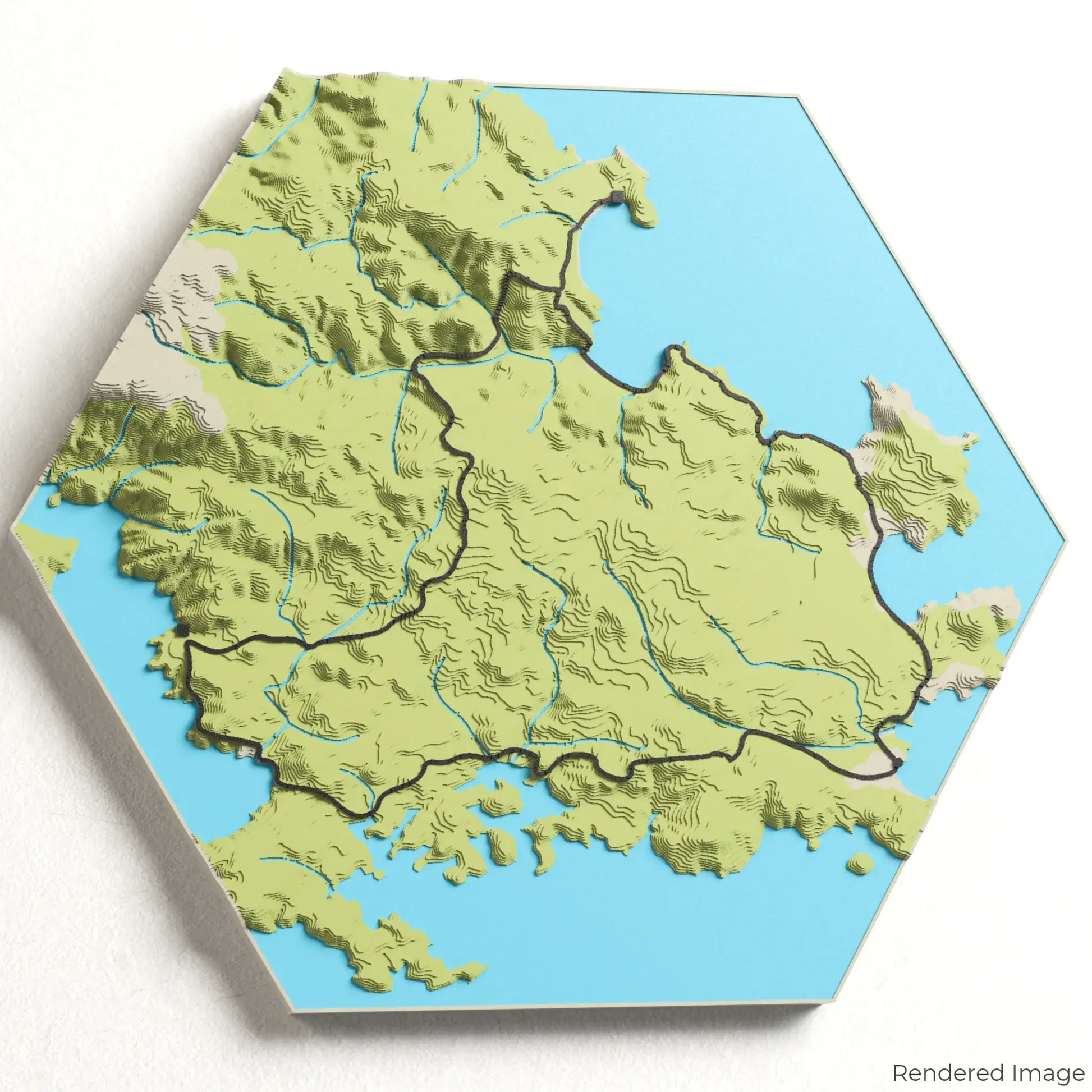 Our maps are meticulously crafted using advanced colour 3D printing technology and PLA, a durable and plant-based plastic.