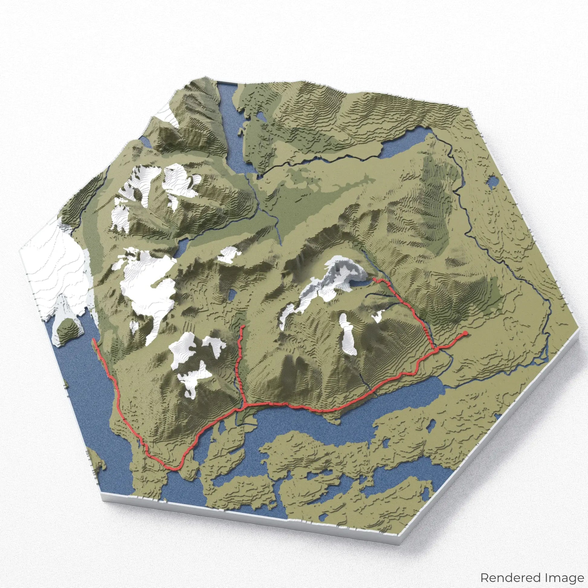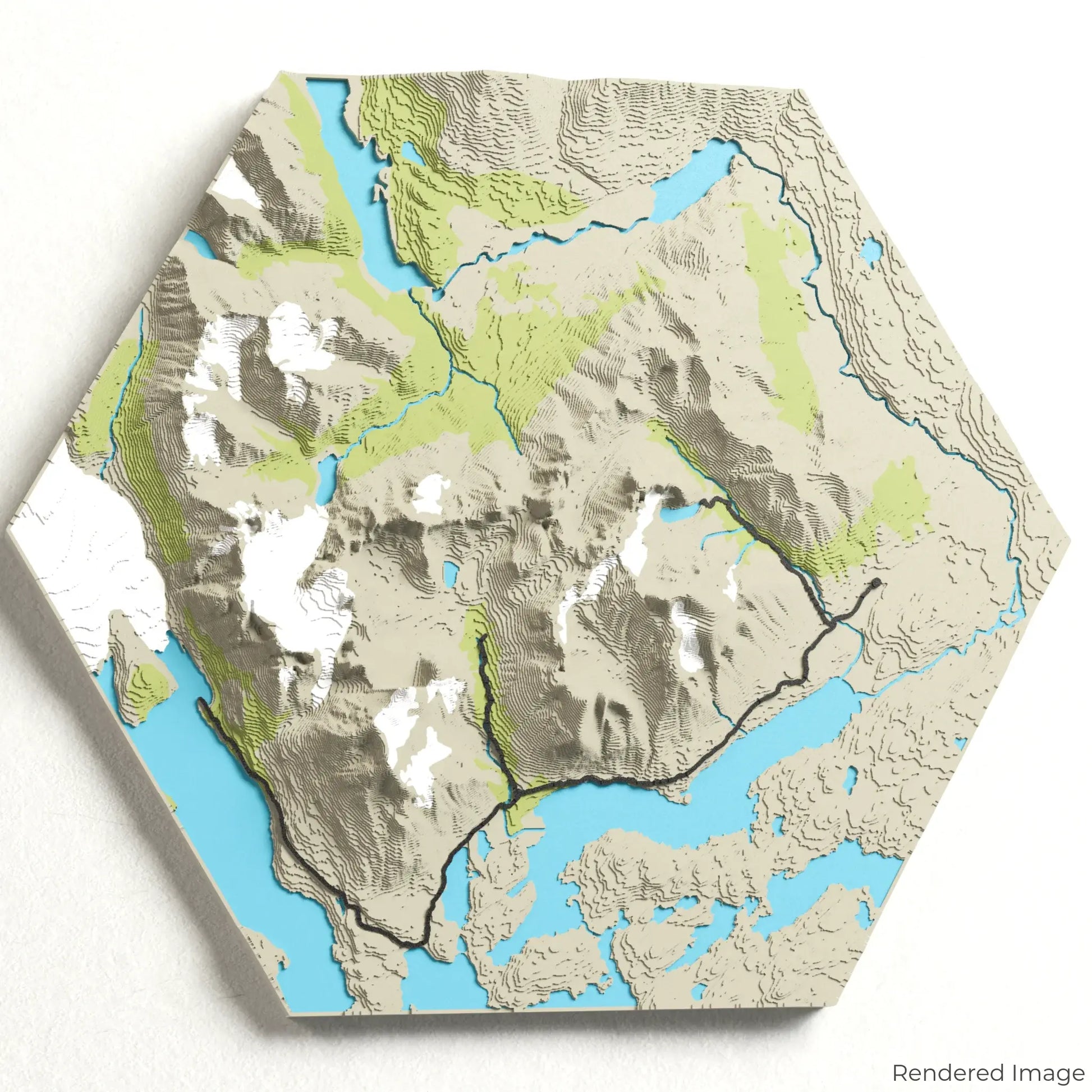 Our maps are meticulously crafted using advanced colour 3D printing technology and PLA, a durable and plant-based plastic.